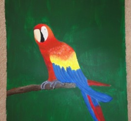 Zuerst hab ich das Tier vorgezeichnet, dann den Hintergrund mit einem Schwamm drumherum gemalt. Danach sind zuerst Rot mit mehr oder weniger schwarzen Tupfern, dann Gelb und schließlich Blau dazugekommen. Eigentlich sollten den Hintergrund Urwaldpflanzen schmücken, aber die sind zu grob gewesen und mir überhaupt nicht gelungen, daher hab ich […]