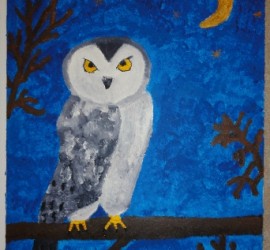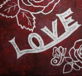 Dieses „lieb“-liche Bild habe ich grundiert, indem ich Karminrot und Lila gemischt und dann mit einem Wattebausch aufgetupft habe. Dadurch ist die ungleichmäßige Struktur zustandegekommen. Dann habe ich vorgezeichnete Rosen und Schmetterlinge mit Hilfe von schwarzem Kohlepapier und Bleistift auf den getrockneten Hintergrund übertragen und mit Weiß nachgezeichnet. Anschließend kam […]