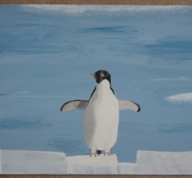 „Meine Welt ist schöööön!“ scheint der kleine Pinguin zu rufen. Nachdem ich mit deckender blauer Farbe und Weiß (sollte ein Eisblau ergeben) das vorherige Bild übermalt hatte und das „eisige Wasser“ getrocknet war, habe ich ein paar Eisschollen mit Weiß hinzugefügt und wieder etwas gewartet. Danach habe ich den Pinguin […]