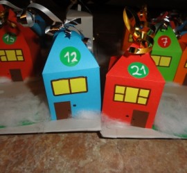 Der bestimmt aufwändigste Weihnachtskalender, den ich je gemacht habe – aber Spaß hat die Bastelei gemacht! Man mache sich eine Schablone, lege die auf farbiges Papier, male drumherum und schneide sie aus, so daß man 23 Häuser herausbekommt. Separat dazu Tür und Fenster ausschneiden, aufkleben, mit braun um die Fenster […]